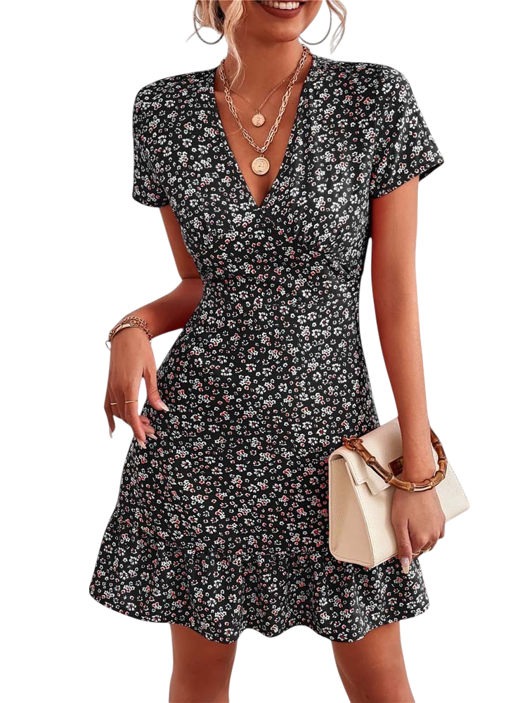 Hannah - Stylish Floral Dress for Women with V-neck and Flared Hem