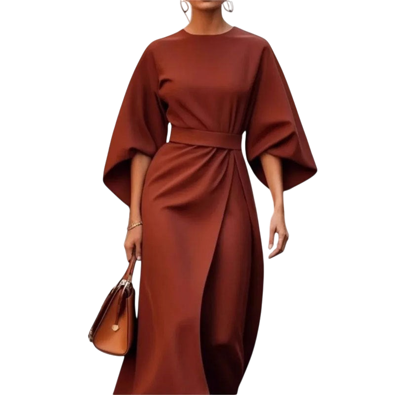 Sonya - Elegant Batwing Sleeve Maxi Dress Belted Waist